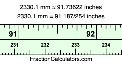 Here is how to convert 2330.1 mm to inches. We will give you the fractional answer, the decimal answer, and illustrate the answer on our tape measure.