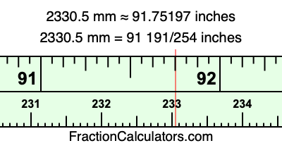 Here is how to convert 2330.5 mm to inches. We will give you the fractional answer, the decimal answer, and illustrate the answer on our tape measure.