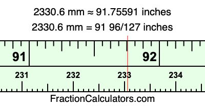 Here is how to convert 2330.6 mm to inches. We will give you the fractional answer, the decimal answer, and illustrate the answer on our tape measure.