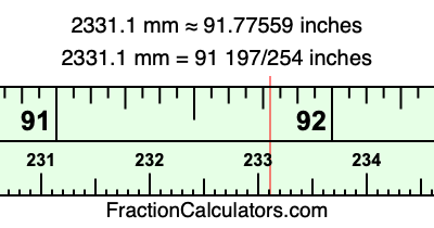 Here is how to convert 2331.1 mm to inches. We will give you the fractional answer, the decimal answer, and illustrate the answer on our tape measure.