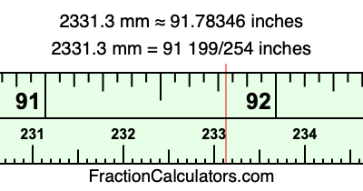 Here is how to convert 2331.3 mm to inches. We will give you the fractional answer, the decimal answer, and illustrate the answer on our tape measure.