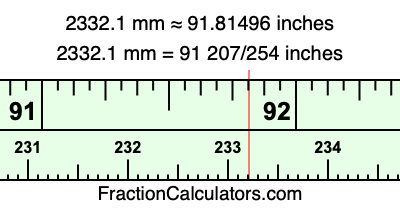 As promised above, we also have the answer to 2332.1 mm in inches in decimal form. Although the fractional answer above is exact, the decimal answer may be rounded if necessary: