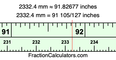 Here is how to convert 2332.4 mm to inches. We will give you the fractional answer, the decimal answer, and illustrate the answer on our tape measure.