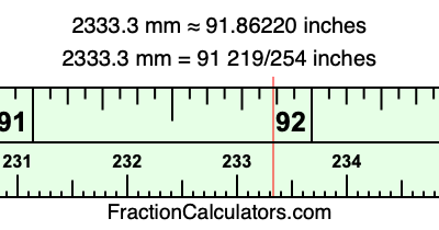 As promised above, we also have the answer to 2333.3 mm in inches in decimal form. Although the fractional answer above is exact, the decimal answer may be rounded if necessary: