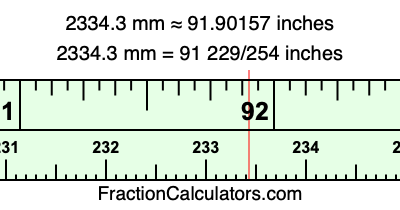 Here is how to convert 2334.3 mm to inches. We will give you the fractional answer, the decimal answer, and illustrate the answer on our tape measure.