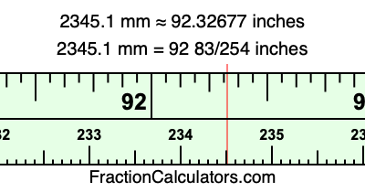 Here is how to convert 2345.1 mm to inches. We will give you the fractional answer, the decimal answer, and illustrate the answer on our tape measure.