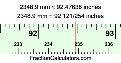 Here is how to convert 2348.9 mm to inches. We will give you the fractional answer, the decimal answer, and illustrate the answer on our tape measure.