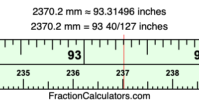 As promised above, we also have the answer to 2370.2 mm in inches in decimal form. Although the fractional answer above is exact, the decimal answer may be rounded if necessary:
