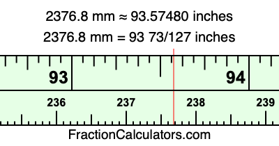 As promised above, we also have the answer to 2376.8 mm in inches in decimal form. Although the fractional answer above is exact, the decimal answer may be rounded if necessary: