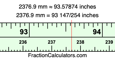 As promised above, we also have the answer to 2376.9 mm in inches in decimal form. Although the fractional answer above is exact, the decimal answer may be rounded if necessary: