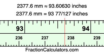Here is how to convert 2377.6 mm to inches. We will give you the fractional answer, the decimal answer, and illustrate the answer on our tape measure.
