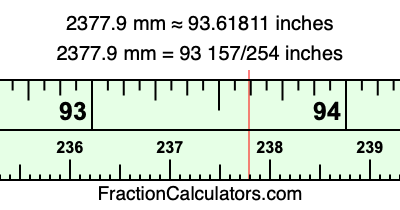Here is how to convert 2377.9 mm to inches. We will give you the fractional answer, the decimal answer, and illustrate the answer on our tape measure.
