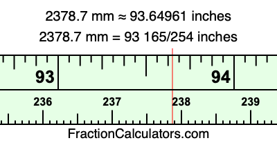 Here is how to convert 2378.7 mm to inches. We will give you the fractional answer, the decimal answer, and illustrate the answer on our tape measure.