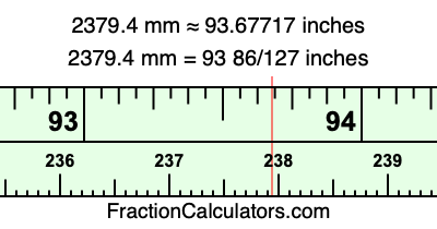Here is how to convert 2379.4 mm to inches. We will give you the fractional answer, the decimal answer, and illustrate the answer on our tape measure.