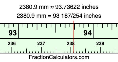 Here is how to convert 2380.9 mm to inches. We will give you the fractional answer, the decimal answer, and illustrate the answer on our tape measure.