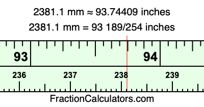 Here is how to convert 2381.1 mm to inches. We will give you the fractional answer, the decimal answer, and illustrate the answer on our tape measure.