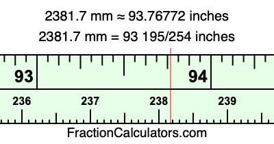 Here is how to convert 2381.7 mm to inches. We will give you the fractional answer, the decimal answer, and illustrate the answer on our tape measure.