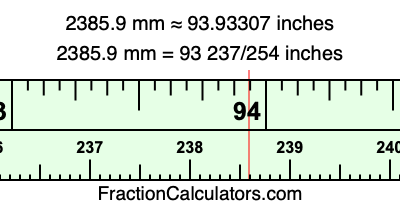As promised above, we also have the answer to 2385.9 mm in inches in decimal form. Although the fractional answer above is exact, the decimal answer may be rounded if necessary: