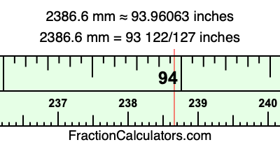 Here is how to convert 2386.6 mm to inches. We will give you the fractional answer, the decimal answer, and illustrate the answer on our tape measure.