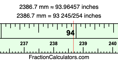 As promised above, we also have the answer to 2386.7 mm in inches in decimal form. Although the fractional answer above is exact, the decimal answer may be rounded if necessary: