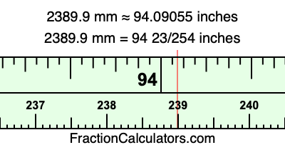 Here is how to convert 2389.9 mm to inches. We will give you the fractional answer, the decimal answer, and illustrate the answer on our tape measure.