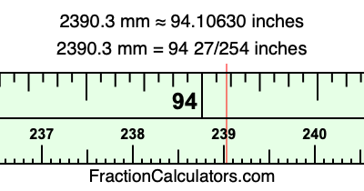 Here is how to convert 2390.3 mm to inches. We will give you the fractional answer, the decimal answer, and illustrate the answer on our tape measure.