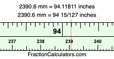 Here is how to convert 2390.6 mm to inches. We will give you the fractional answer, the decimal answer, and illustrate the answer on our tape measure.