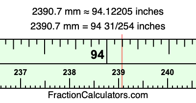 Here is how to convert 2390.7 mm to inches. We will give you the fractional answer, the decimal answer, and illustrate the answer on our tape measure.