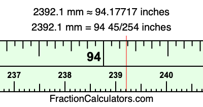 As promised above, we also have the answer to 2392.1 mm in inches in decimal form. Although the fractional answer above is exact, the decimal answer may be rounded if necessary: