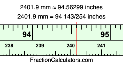 Here is how to convert 2401.9 mm to inches. We will give you the fractional answer, the decimal answer, and illustrate the answer on our tape measure.