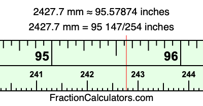 As promised above, we also have the answer to 2427.7 mm in inches in decimal form. Although the fractional answer above is exact, the decimal answer may be rounded if necessary: