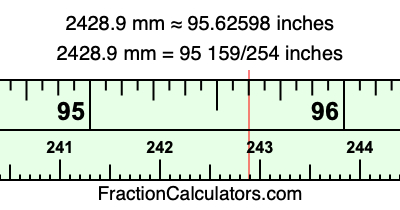 As promised above, we also have the answer to 2428.9 mm in inches in decimal form. Although the fractional answer above is exact, the decimal answer may be rounded if necessary: