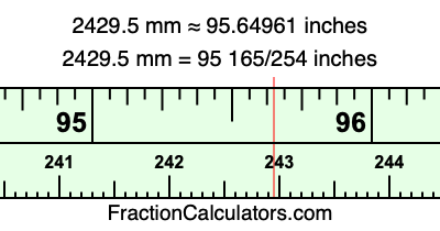 As promised above, we also have the answer to 2429.5 mm in inches in decimal form. Although the fractional answer above is exact, the decimal answer may be rounded if necessary: