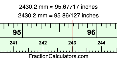 As promised above, we also have the answer to 2430.2 mm in inches in decimal form. Although the fractional answer above is exact, the decimal answer may be rounded if necessary: