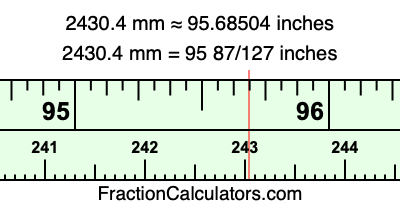 As promised above, we also have the answer to 2430.4 mm in inches in decimal form. Although the fractional answer above is exact, the decimal answer may be rounded if necessary: