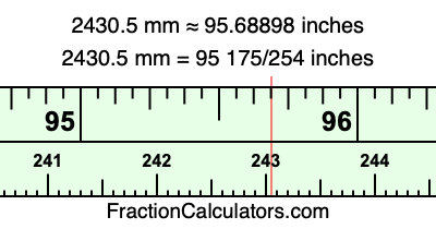 As promised above, we also have the answer to 2430.5 mm in inches in decimal form. Although the fractional answer above is exact, the decimal answer may be rounded if necessary: