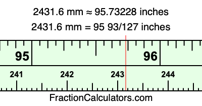 Here is how to convert 2431.6 mm to inches. We will give you the fractional answer, the decimal answer, and illustrate the answer on our tape measure.
